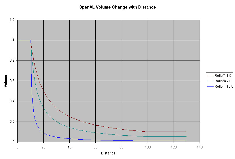 2. Maybe OpenAL should have a linear drop-off function in addition to the inverse distance ones. Will this make the sounds less realistic? I don't know...I'm not a sound Engineer. However, it sure would make sound programming a lot easier.