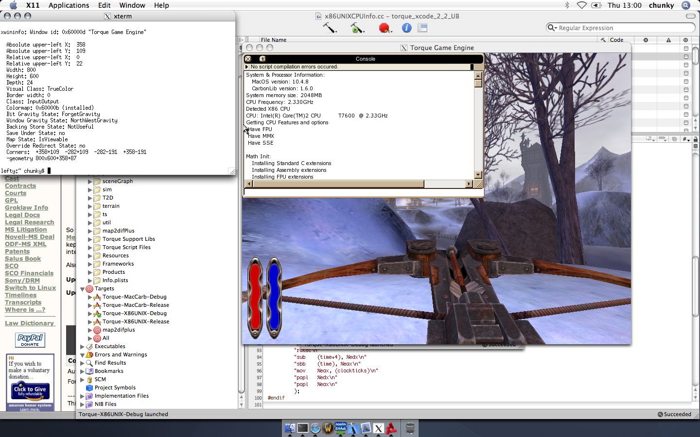 TorqueX11OSX.dmgSlap that in your torque examples/ dir, and run it. Needs X11 installed and running, and an intel mac.