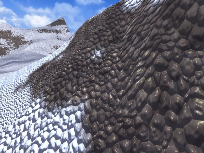 I set everything up so that I could followup with some code that actually uses different bump maps based on the terrian opacity map. So that will be my next goal. I may end up rewriting how terrains are blended though. I need to think on this somemore. I would really rather the opacity and lightmap be the only textures that are runtime merged via the clipmapping functions. Shaders should take care of the individual blending and bumpmapping I think. I may take a step even further back and try to get that to work. when I clean this up and if no one else has done a better one I will post a resource on what I did. Till then, comments and suggestions are welcome.