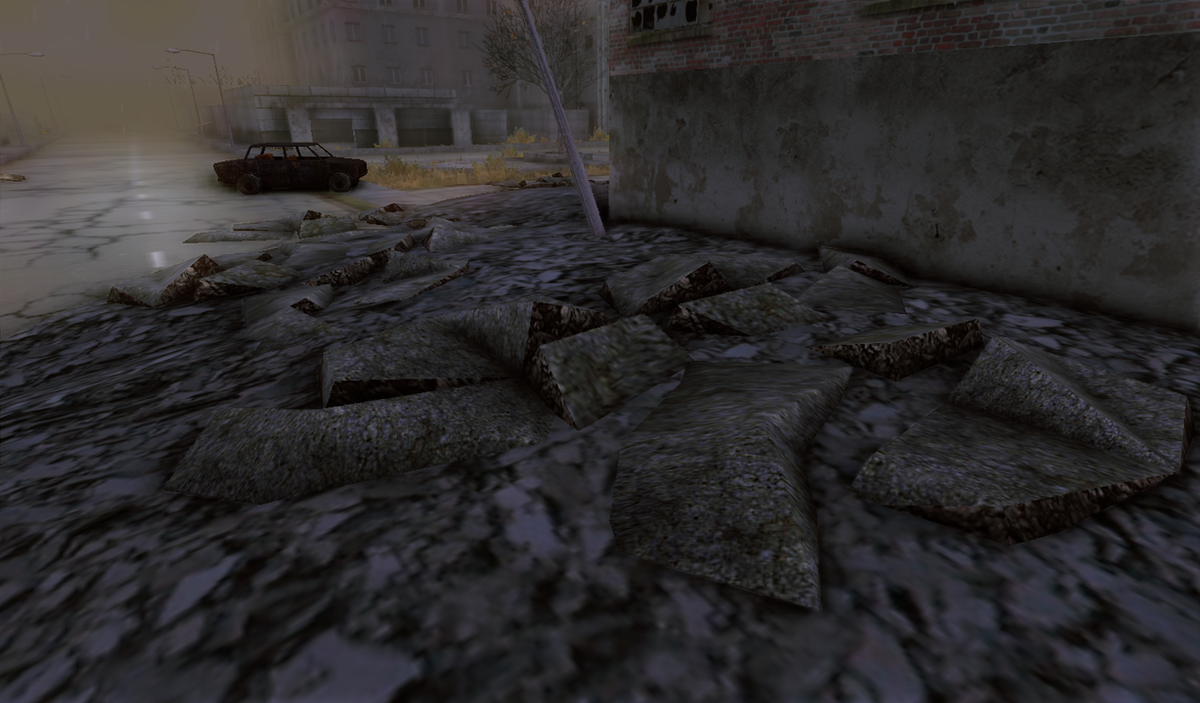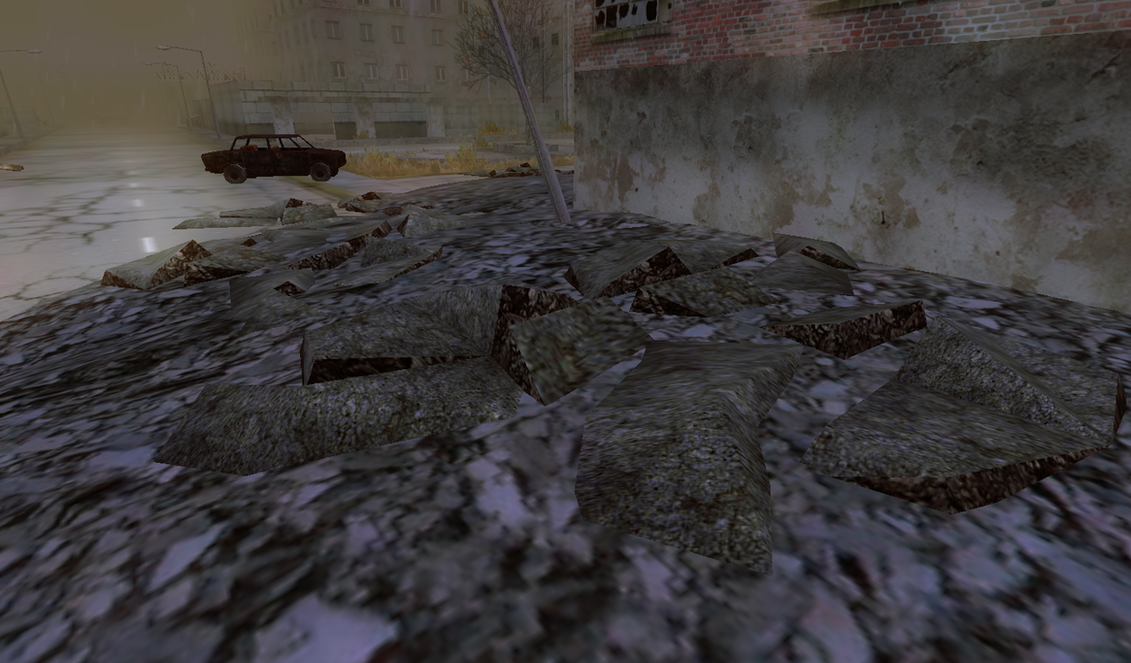 This area was re-done. We hollowed out the building, blew part of it up (Obviously), and added some support beam props. (Not to mention rubble.)